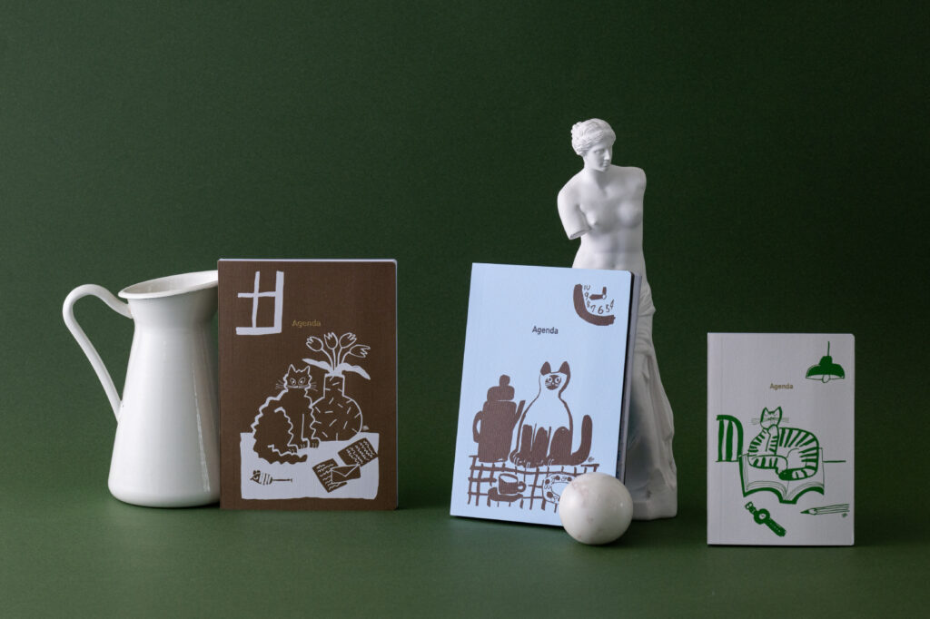 イラストレーター・yamyamさんとのコラボレーションダイアリー。愛猫との素敵な暮らしを思わせる全3柄で、いずれもテーブルの上でくつろぐネコの姿をユーモラスに切り取っています。おちゃめな表情が印象的で、日常に癒しを添えてくれます。
