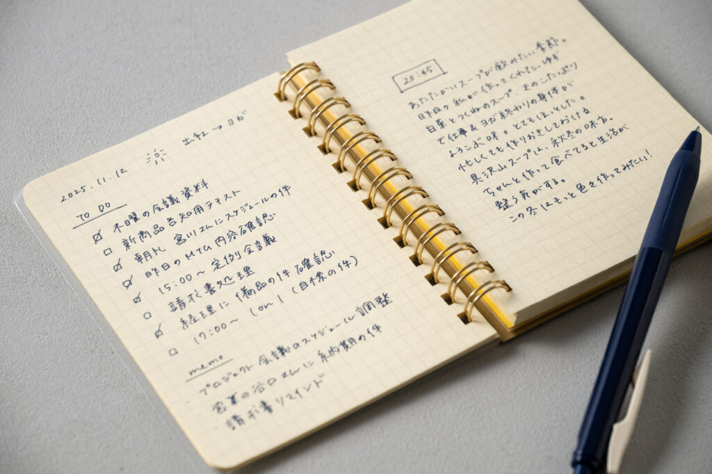 “ToDoや覚書、一言日記を書いて、1日1ページとしてぴったり埋まる大きさ“