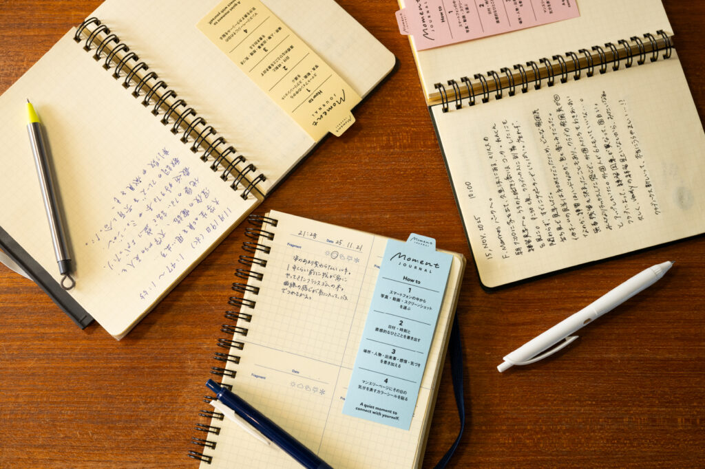 1ヵ月書いてみて感じたのは、モーメント・ジャーナルは、継続しながら自分に合うスタイルが見つかっていく、柔軟な記録方法であるということだ。ガイドのような役割としてステップを設けてはいるが、「同じように書く」ためのものではない。同じ時間に、同じ期間続けても、自然とそれぞれのスタイルが確立されていき、その違いこそが自分の毎日を愛おしく感じさせるものになっていった。