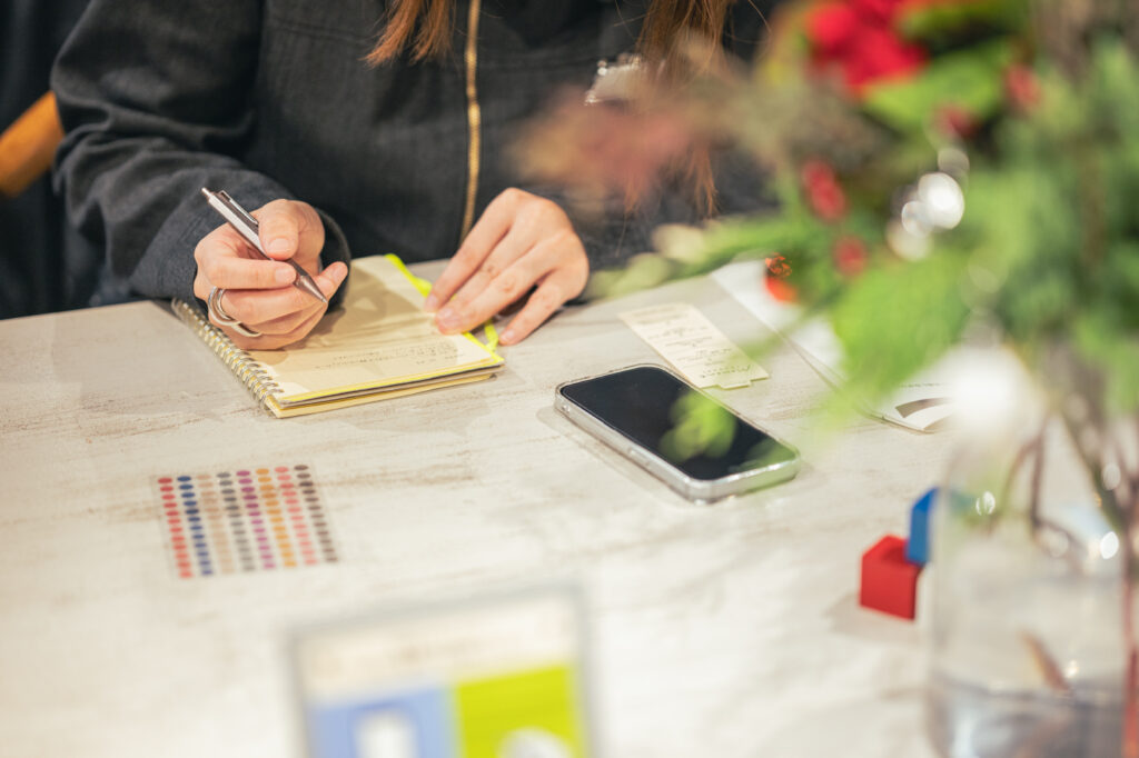 第3回のワークショップでは、基本的な書き方の体験はそのままに、デルフォニックスのスタッフによるリアルなモーメント・ジャーナルの展示や、テーマを設けた記録を取り入れ、一層その面白さを感じていただける時間となりました。