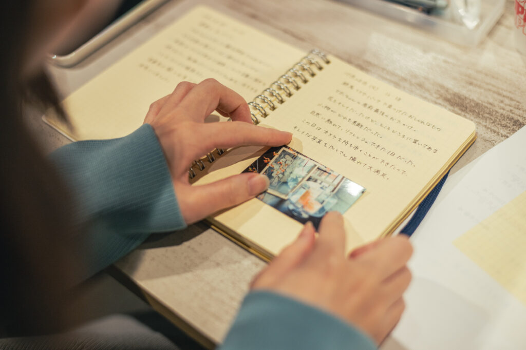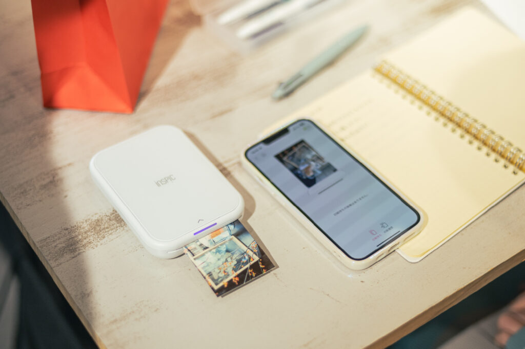 この時間では、題材にした写真をその場で印刷して貼り付けることができる、ミニフォトプリンター「iNSPiC」もご用意。これまでのワークショップを通して、「書いた写真と一緒に見返せるとより楽しい」という声があったことから、今回新たに取り入れました。文字だけでも記録として十分ですが、よりその日の景色や空気感を鮮明に思い出したいという方におすすめです。