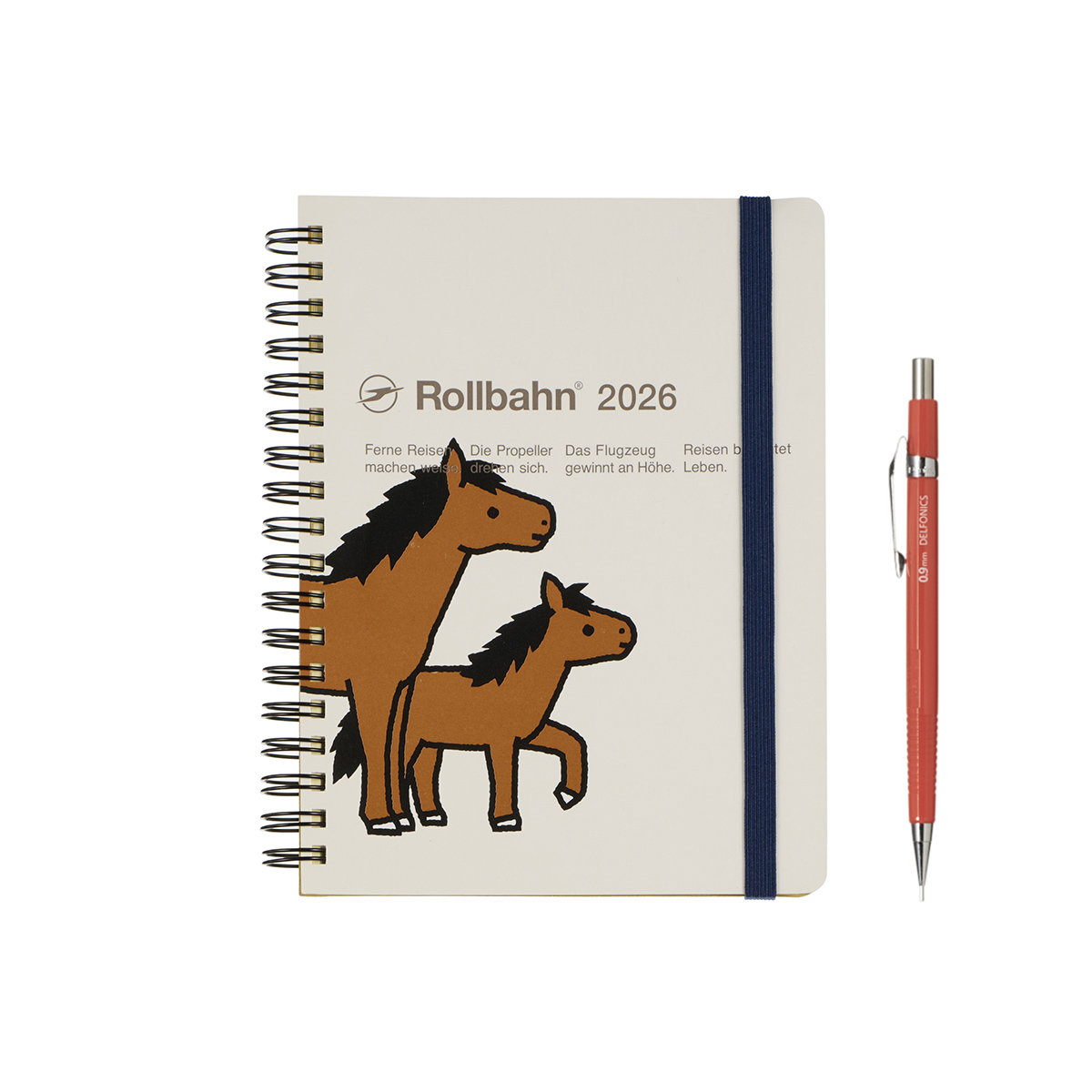 2026年の干支、「午(うま)」を表すウマをモチーフにした、日々のタスク管理に便利な縦軸のログチャートページが入ったロルバーンダイアリー。毎日の習慣やタスク、収支などを記録するためのダイアリーです。おめでたいことや祝い事と連想される縁起の良い動物で、幸運を運ぶ象徴とされているウマ。親子が仲良く寄り添う様子を描いた、あたたかみのあるデザインです。