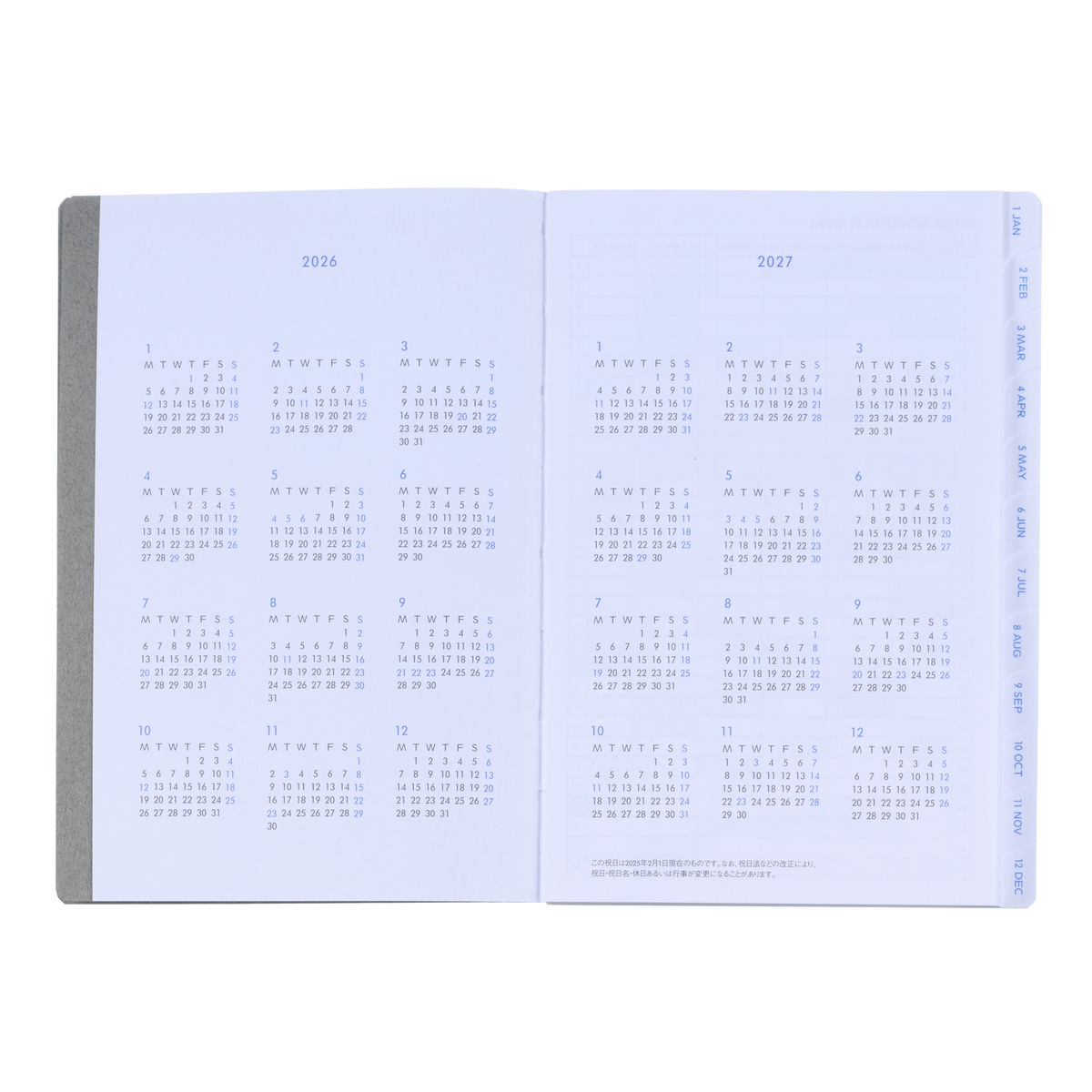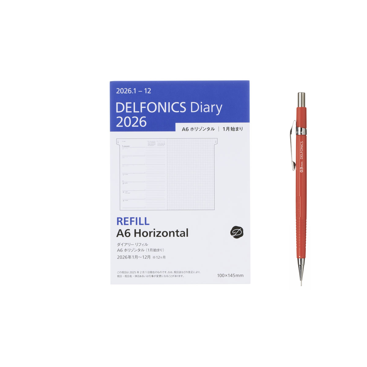2026年1月~2026年12月までのスケジュールを管理できる、コンパクトなA6サイズのダイアリーリフィルです。