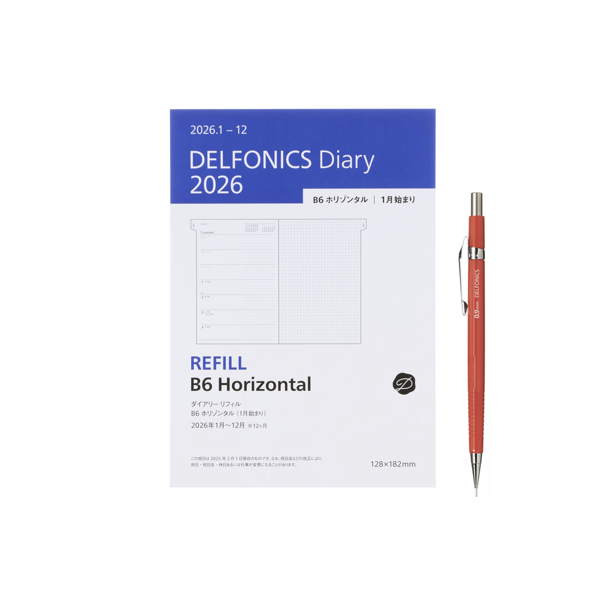 手帳 2026/【2026年1月始まり】ダイアリーリフィル B6 ホリゾンタル