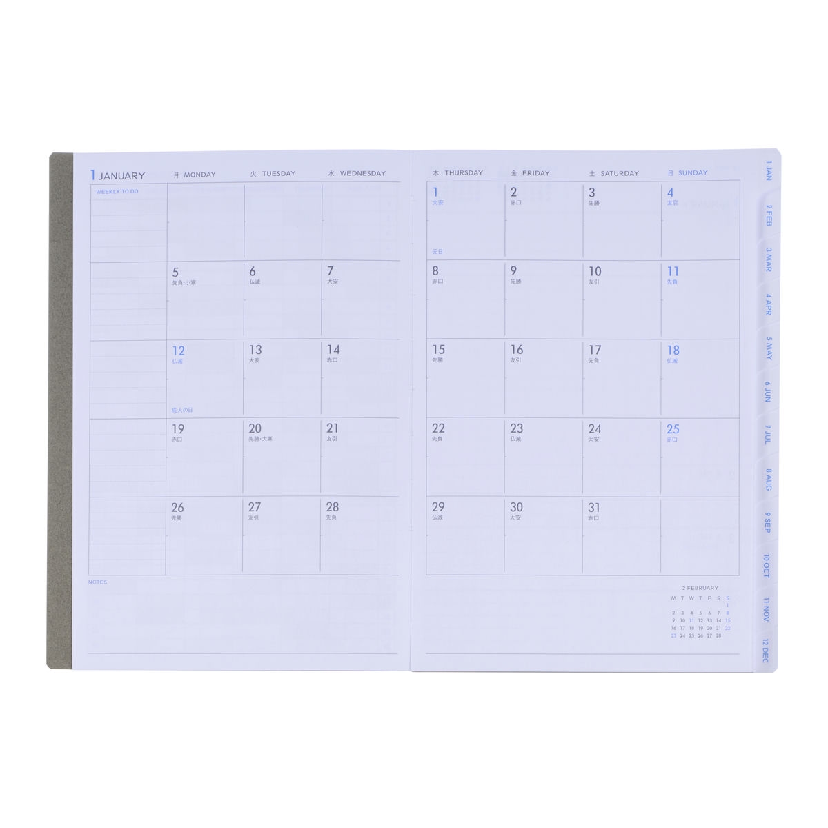 ※誠に勝手ながら、1月始まりのカバー付きダイアリー・デザイン付きダイアリーは2026年1月をもちまして販売を終了いたします。