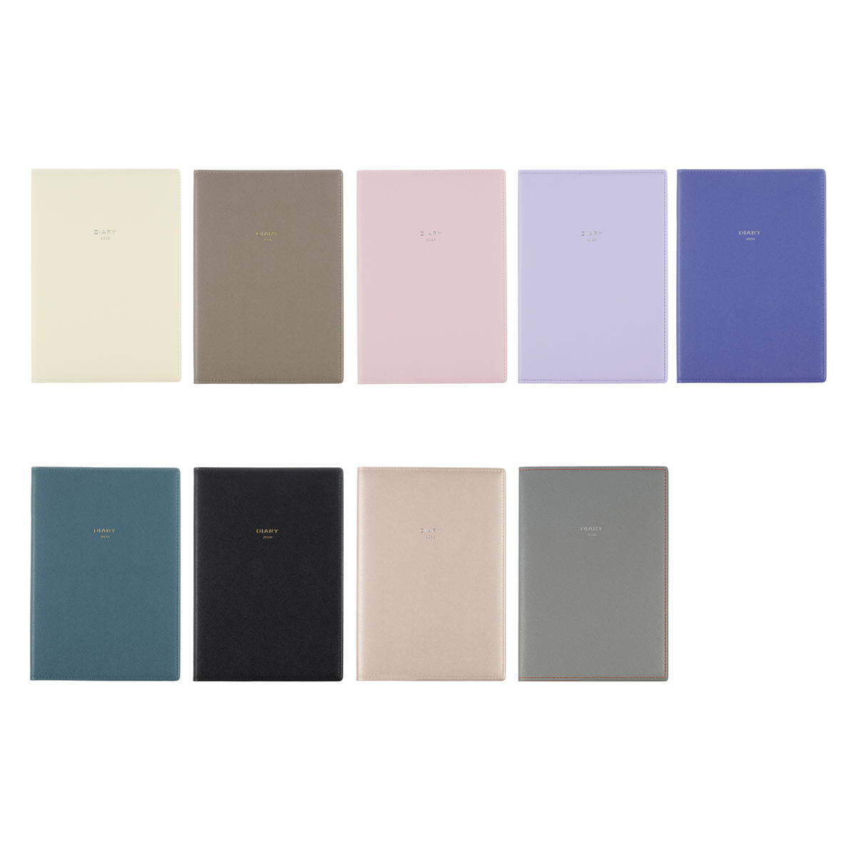 スコッチグレインレザーを思わせる手触りと、豊富なカラーバリエーションが魅力の定番ダイアリー。シボの表情と丁寧なステッチが、洗練された印象を与えます。