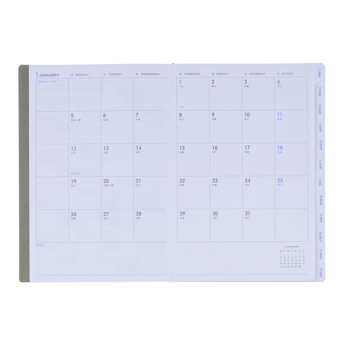 ※誠に勝手ながら、1月始まりのカバー付きダイアリー・デザイン付きダイアリーは2026年1月をもちまして販売を終了いたします。