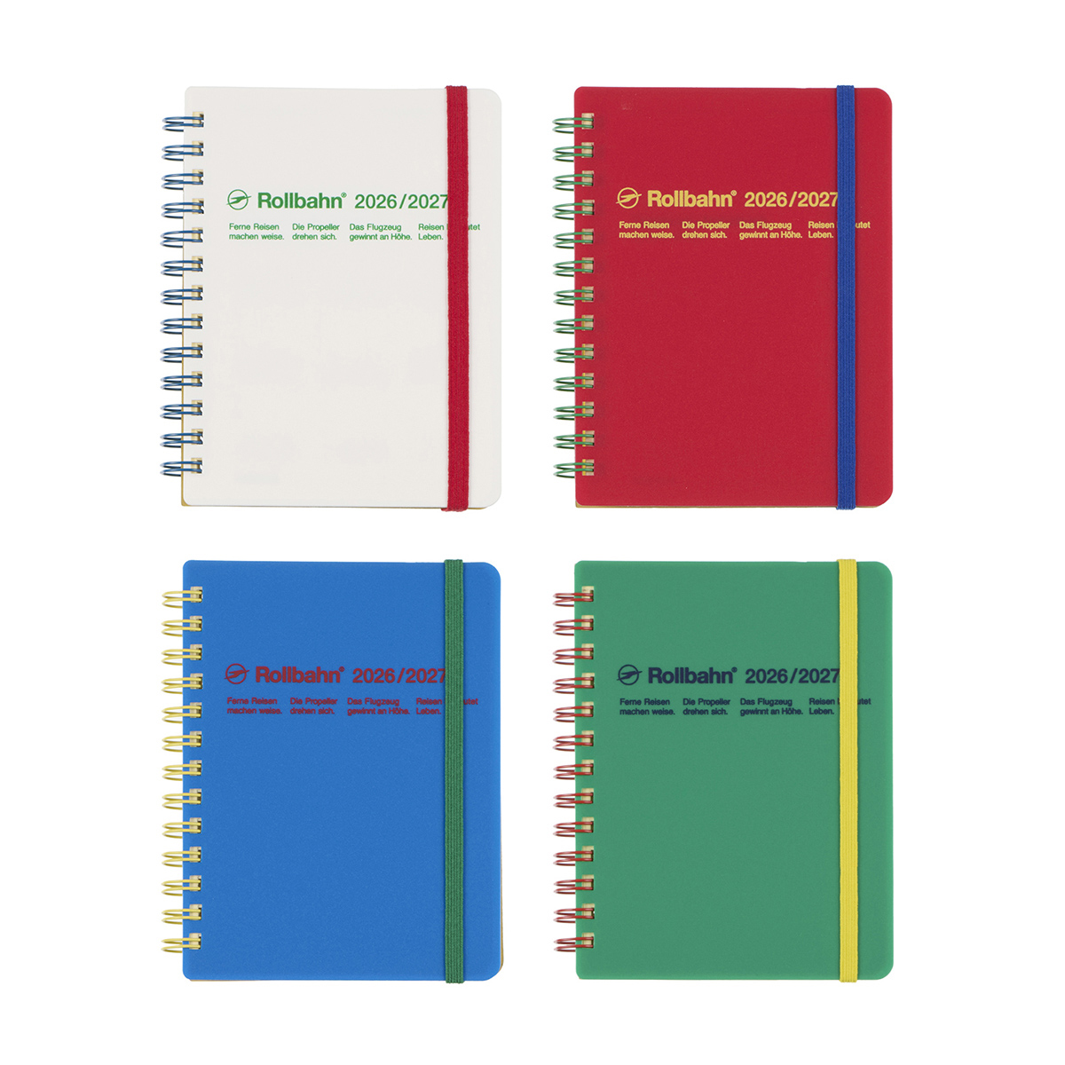 ポップな色の組み合わせが楽しいロルバーンダイアリー。発色のいいプラスチック素材の表紙に、リングやロゴ、ゴムバンドで差し色をプラスしました。