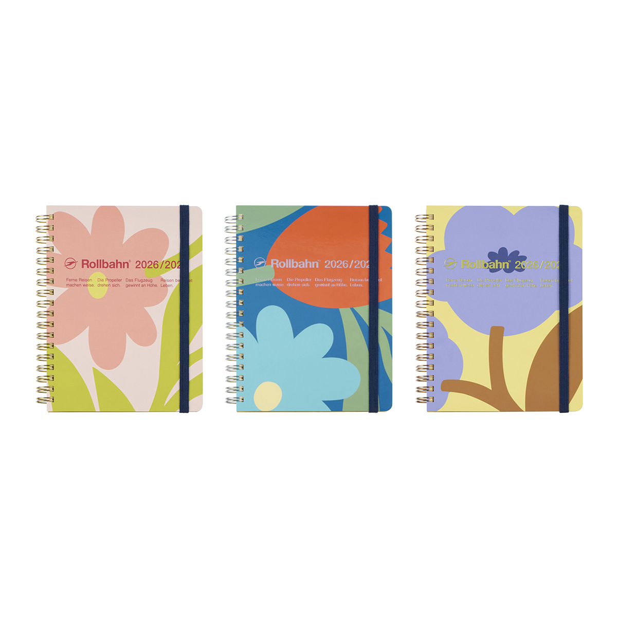 表紙いっぱいに花を描いたロルバーンダイアリー。鮮やかな色使いが目を引きます。ビッグサイズのポスターを切り取ったような広がりを感じるデザインです。