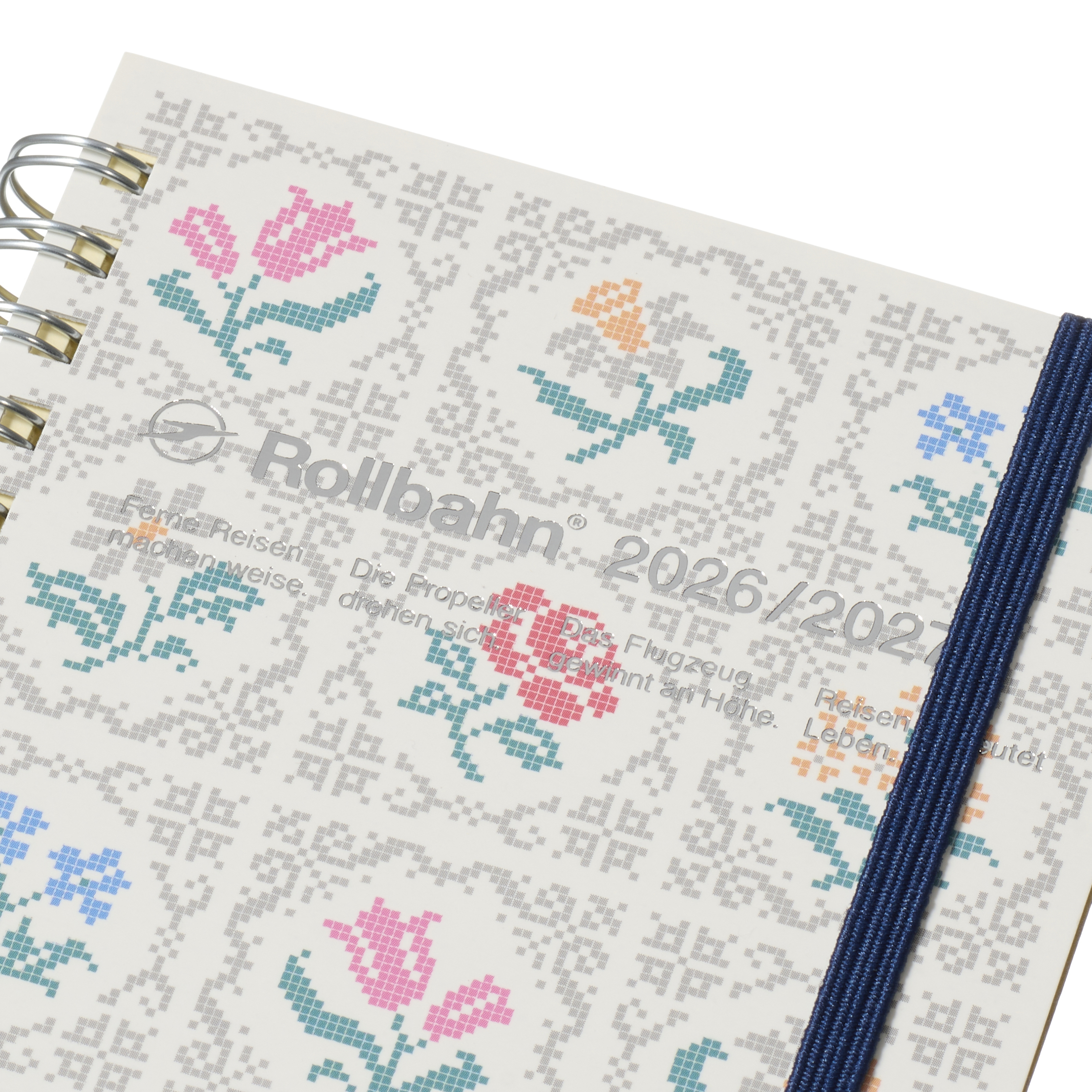 かぎ針で編んだような花柄を描いたロルバーンダイアリー。ファッションのトレンドを取り入れた透かし模様が印象的なデザインです。