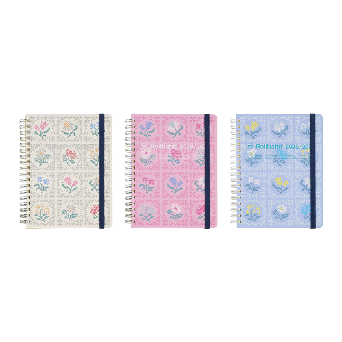 かぎ針で編んだような花柄を描いたロルバーンダイアリー。ファッションのトレンドを取り入れた透かし模様が印象的なデザインです。