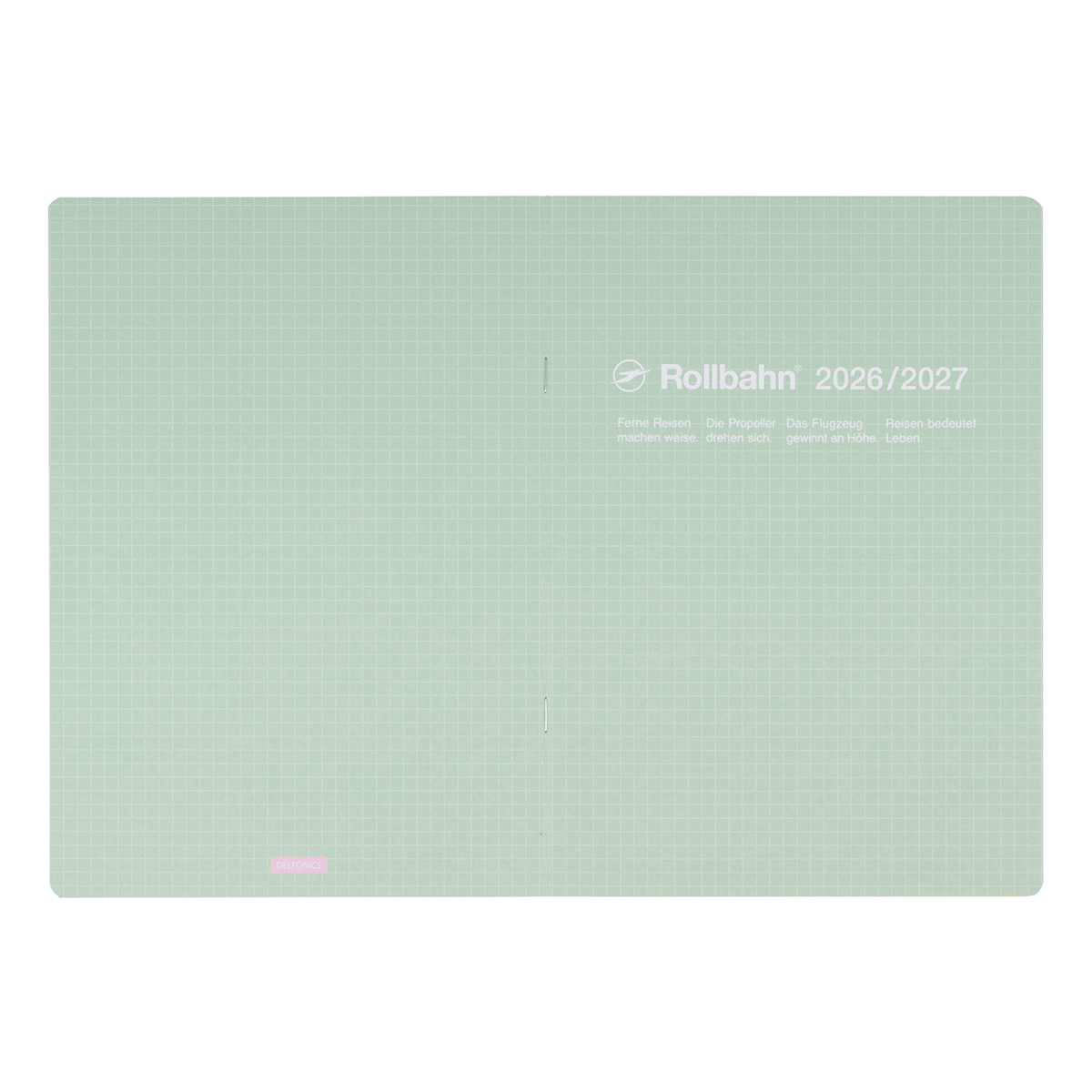 青空がよく似合うような、爽やかで清涼感のあるカラーリングが特徴です。ホワイト、ライトピンク、ライトパープル、ライトブルー、ミントの全5色。表紙には、ロルバーンのメモページと同じ5mm方眼をあしらい、トロピカルな雰囲気も感じさせる色合わせに仕上げました。裏表紙の下部には、DELFONICSのロゴを配しています。