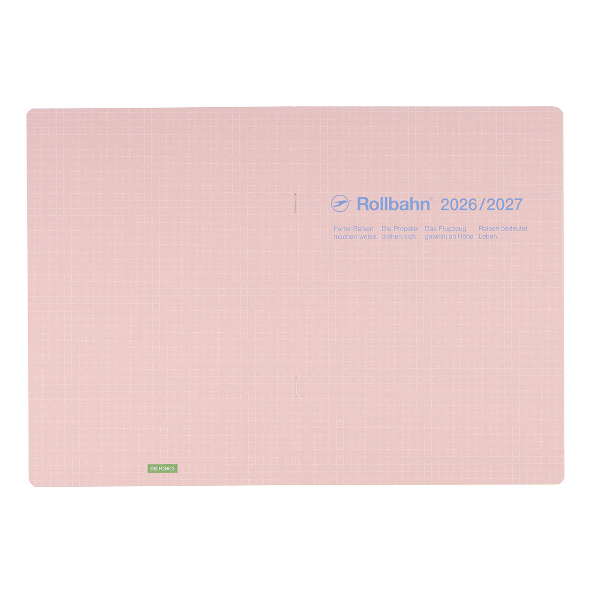 青空がよく似合うような、爽やかで清涼感のあるカラーリングが特徴です。ホワイト、ライトピンク、ライトパープル、ライトブルー、ミントの全5色。表紙には、ロルバーンのメモページと同じ5mm方眼をあしらい、トロピカルな雰囲気も感じさせる色合わせに仕上げました。裏表紙の下部には、DELFONICSのロゴを配しています。